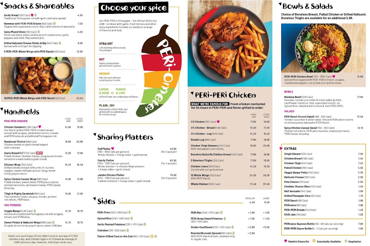 At Nando's, the star of the show is their signature PERi-PERi chicken. All dishes are lovingly basted in their unique PERi-PERi sauce, offering a delightful mix of heat and flavor that appeals to spice lovers. One standout option is the PERiParadise Platter, which serves up a whole chicken, large PERiFries, spiced rice, and garlic bread, making it ideal for sharing with family and friends. For a lighter option, the PERiParadise Chicken Melt features succulent pulled chicken with melty cheddar and grilled PERipineapple, all served on warm, buttery garlic bread—absolutely delicious!